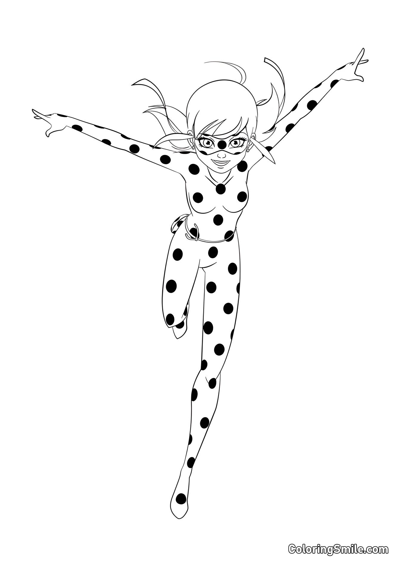 Коли на Париж опускається темрява, Марінетт перетворюється на Леді Баг. Вона поспішає боротися зі злочинцями та захищати невинних. Їй на допомогу приходить Кот Нуар. Супергерої носять маски, що ускладнює здогадатися про їхні справжні особистості. Марінетт не впізнає свого партнера в повсякденному житті — це Адріан, хлопець, з яким їй занадто соромно навіть поговорити. Розмальовки Леді Баг та Кота Нуара також демонструють яскраві шкільні моменти та веселі нічні пригоди.